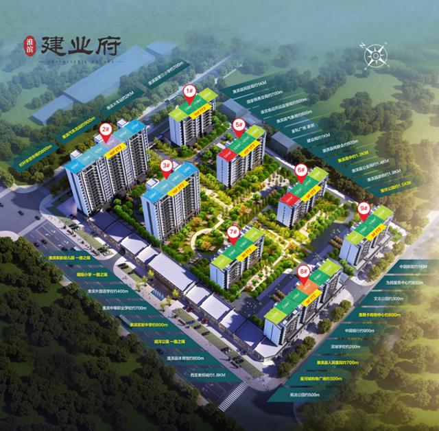 淮濱建業府是由淮濱縣凱地置業有限公司開發,項目位于淮濱縣青年街與閭河路交叉口(淮濱實驗幼兒園對面)。項目總占地約39.38畝,總建筑面積68114.65㎡,容積率1.99,綠化率35%,由2棟高層、6棟洋房組成,目前5棟樓已封頂。