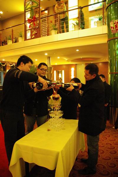 國學的復興在于創新,國學的進步在于優化。有這么一個地產人,他讓人們知道國學不只是之乎者也,也不只是茴字有四種寫法,而且還有:上層族群、up上行、3+等鮮活充滿創造力的詞匯,他,就是精工地產梁耀華先生。一個大聲說出大家聽不懂的話、勇于肢解文字的地產人,他用自己的行動,精彩詮釋了什么是“國學詞匯創新”。尚正行董事開啟香檳