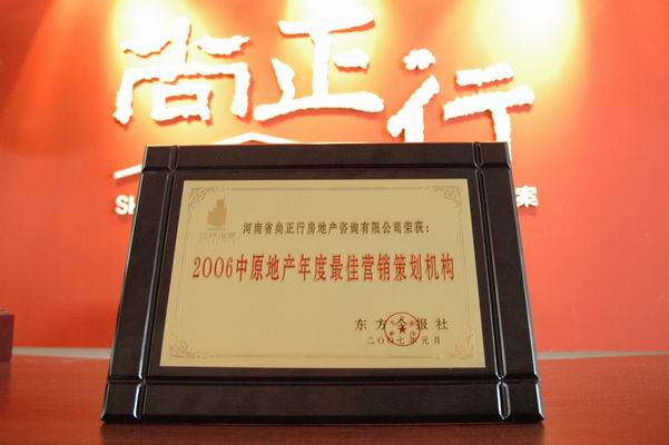 祝賀:尚正行榮獲2006中原地產年度最佳營銷策劃機構