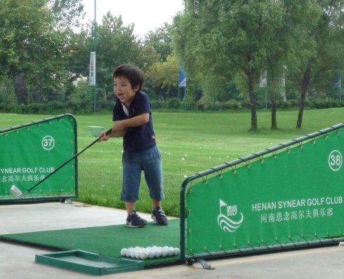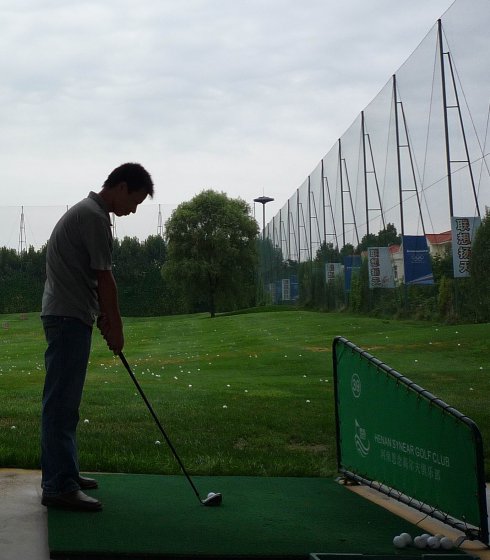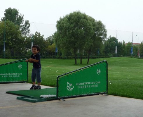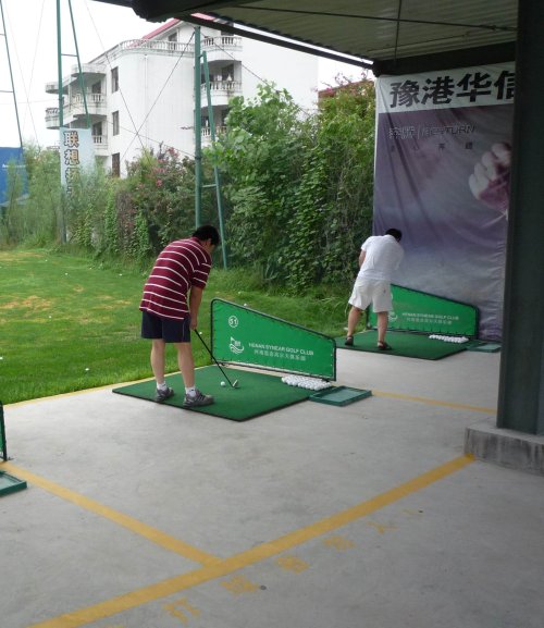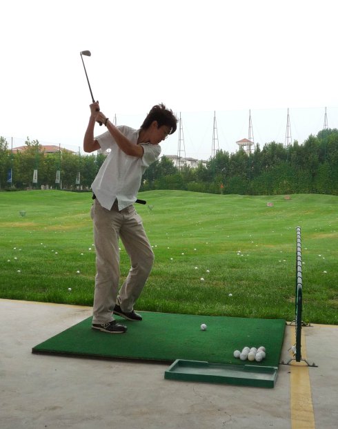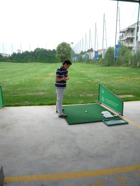 周六早上8點在約定的地方集合后,向目的地——思念果嶺山水進發(fā)。雖然天下著小雨,大家仍然興致勃勃,一路上有說有笑。車行出市區(qū)后,我們被路旁大片大片的路色植被吸引,雨后的草香伴著泥土的芬芳令人陶醉。天公作美路上還下著小雨,等我們一到高爾夫練習場天立馬見晴。大家一開始摸不著門道,經(jīng)過幾輪之后漸漸熟悉了