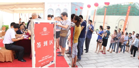 天氣雖然酷熱,卻抵擋阻不住客戶們積極的心情,他們一早就來到海德一號售樓部門口,排隊簽到,希望盡早簽下自己中意的樓盤。