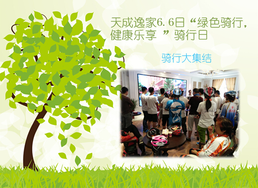 2015.6.6日,天成逸家“綠色騎行,健康樂享”騎行日在漯河市臨潁縣順利舉行,騎行線路基于安全出行及不影響交通為原則,盡可能的做到以右轉彎為主,線路覆蓋了新城區、鬧市區、老城區的核心廣場。總全程為30公里,需用時100分鐘。