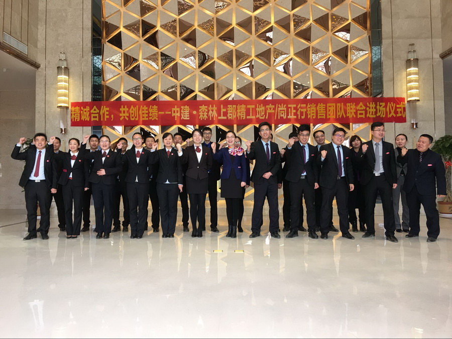 上午9:30分,中建森林上郡——尚正行、精工地產銷售團隊聯合進場儀式正式開始,所有與會人員在售樓部大廳整齊列隊,主持人首先致開場白,隆重介紹歡迎各位領導嘉賓的到來,并隆重介紹了與會的各位嘉賓、領導。
